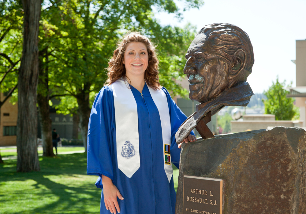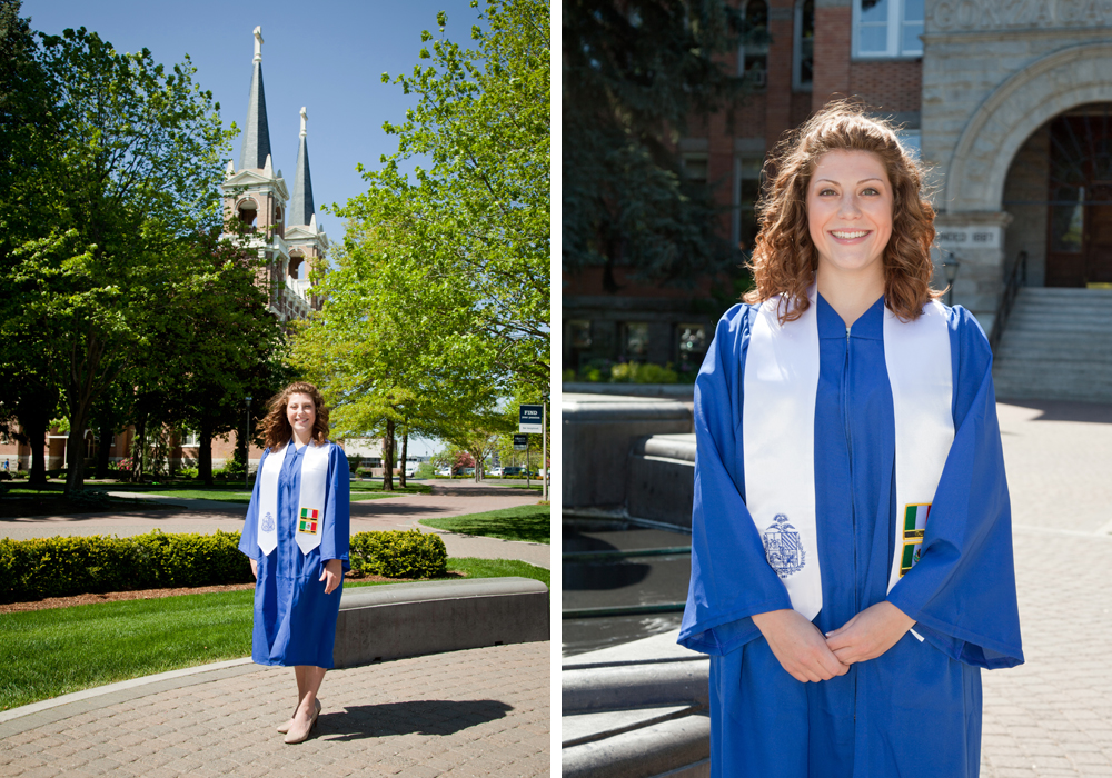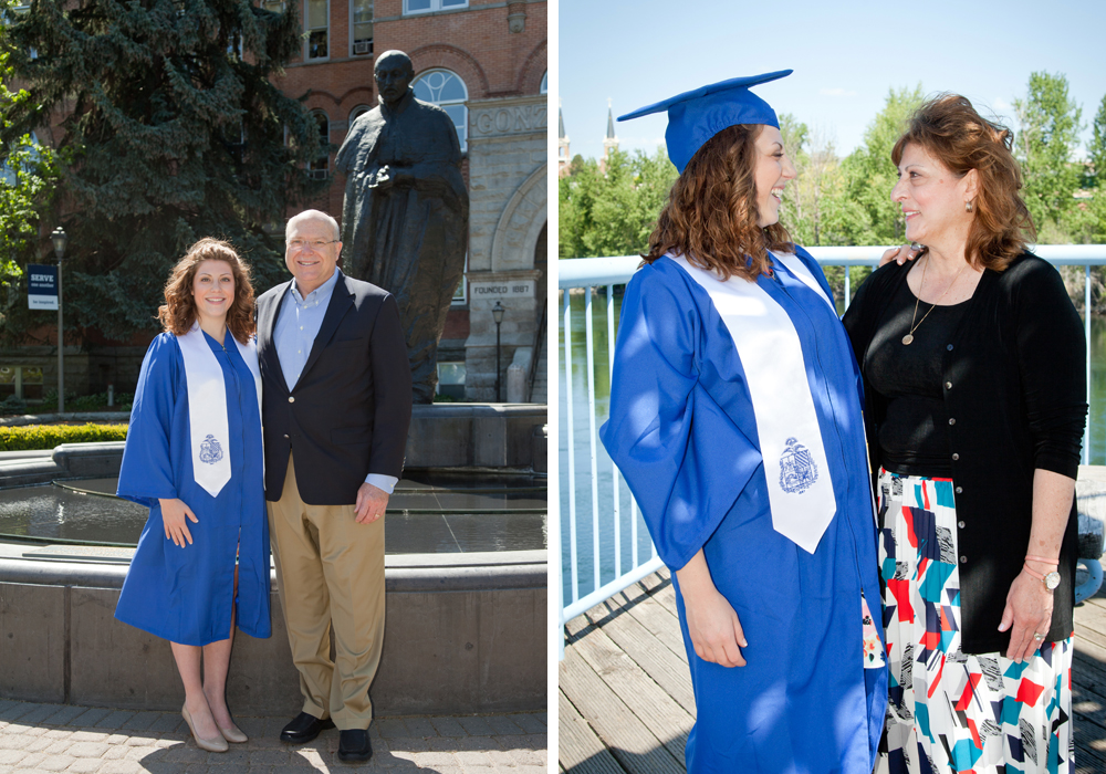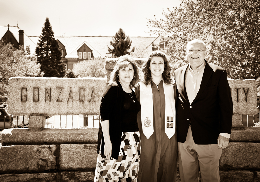 It was a pleasure to meet Emily and her parents Kathy and Gary. I met them near the statue of St. Ignatius a.k.a. “Darth Vader” and we mapped out our photo session. You’ll see in the images that we hit all the iconic spots (skipping the Bulldog statue because like most GU students Emily already has plenty of photos next to it!). As we meandered from St. Al’s to the Bing Crosby house Emily said hello to classmates and we chatted about future plans. I am interested in everyone I photograph, that’s what helps me to capture my subjects. The ability to portray a person as their friends and family know them is very important to me. I try not to stylize my sessions, or put too much of my own likes and interests into some ones photos. We may have started the day as strangers, but after an hour of walking, talking and stopping for photographs, I felt like I knew Emily and her parents and I felt like I had captured her. I hope that when they see these images they say “Ah, that’s the fun loving, hard working, caring Gonzaga graduate we know!” Thank you so very much for spending time with me and allowing me to capture your family photos during this milestone in Emily, and your, lives. Congratulations Emily! Best wishes in your future endeavors! Cheers!
