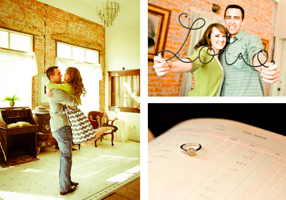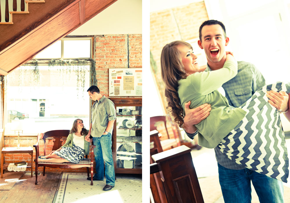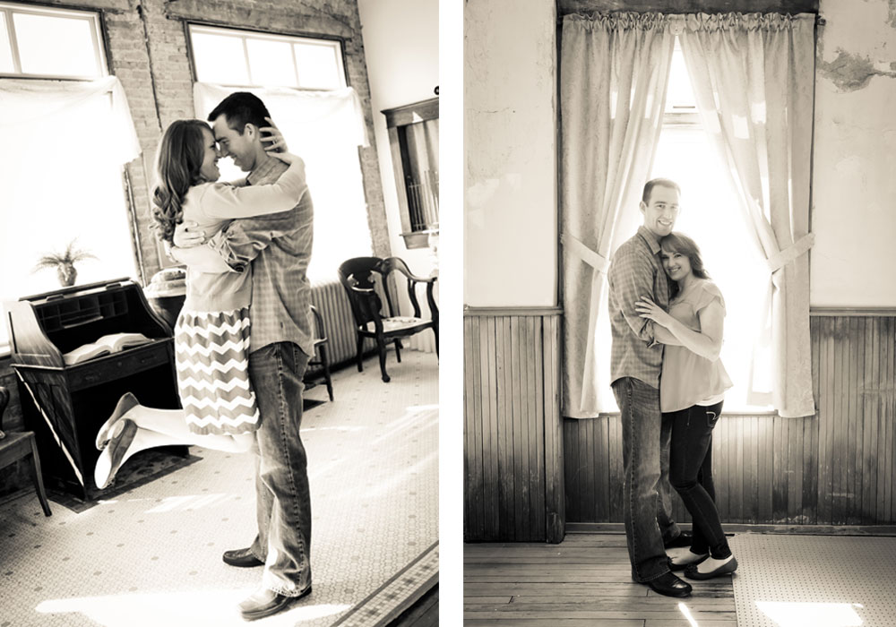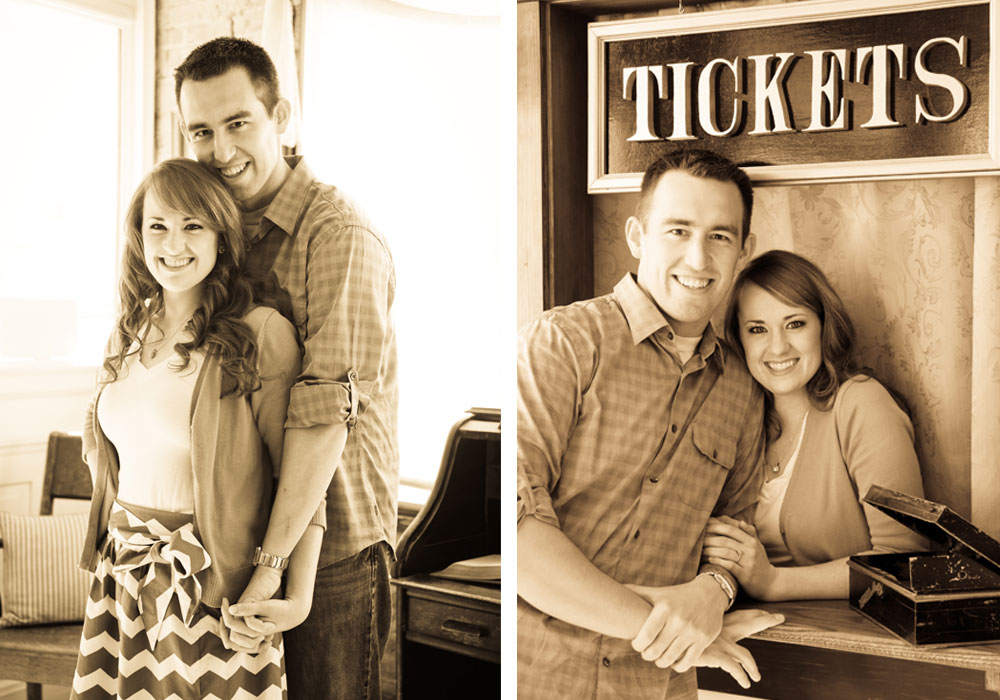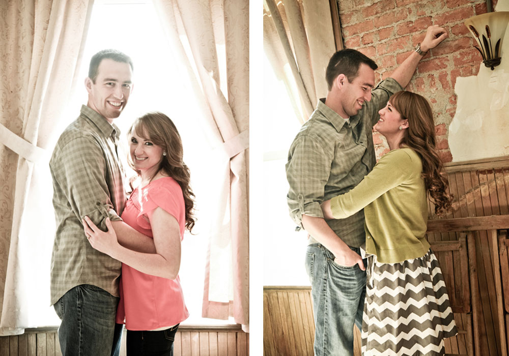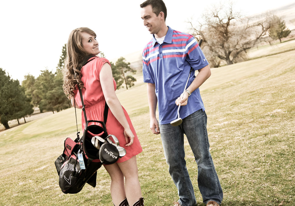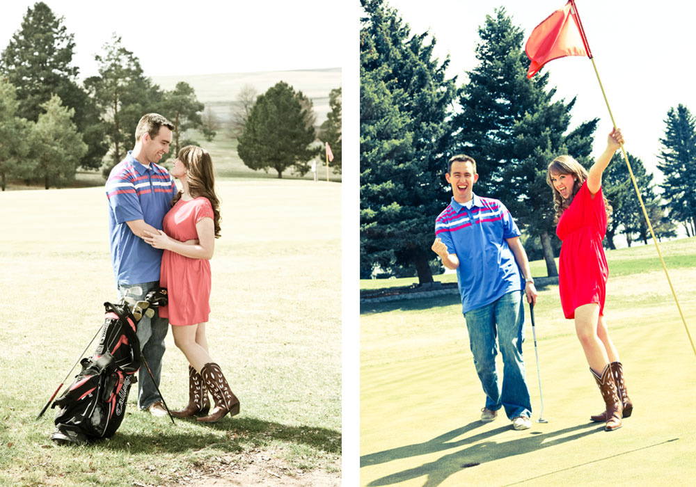 What a great day for engagement photos! The quaint town of Harrington, WA was the perfect backdrop for this country girl and Spokane city boy. Well, Brad was at home once we got to the golf course. The Harrington Opera house was a photographer’s dream to shoot in, with an abundance of natural light and more textures and detail that I even imagined we’d find there! Brad and Andrea are so perfect for each other I had no problem filling a 4 GB memory card (500 images)! And no Brad and Andrea, I didn’t take a record number of pictures because you WEREN’T photogenic, it was quite the opposite! Thank you for a fun day! Those 5 hours just flew by! HaHa Looking forward to June 23rd! And on a final note- yes, Andrea’s diamond IS yellow! It’s beautiful! Cheers! xoxo, Emma