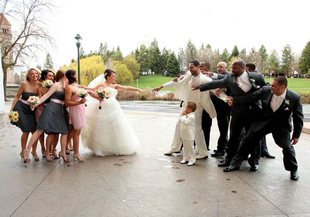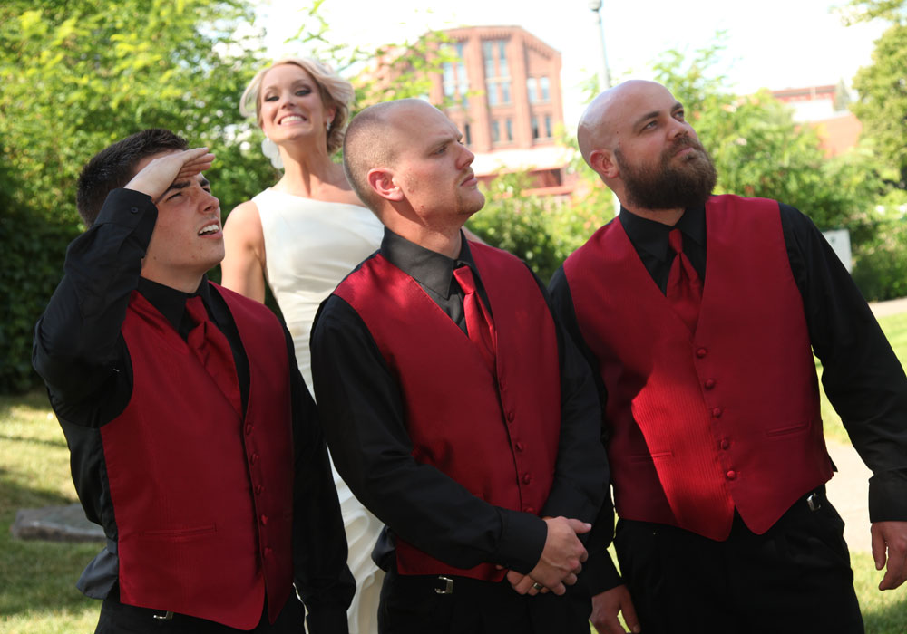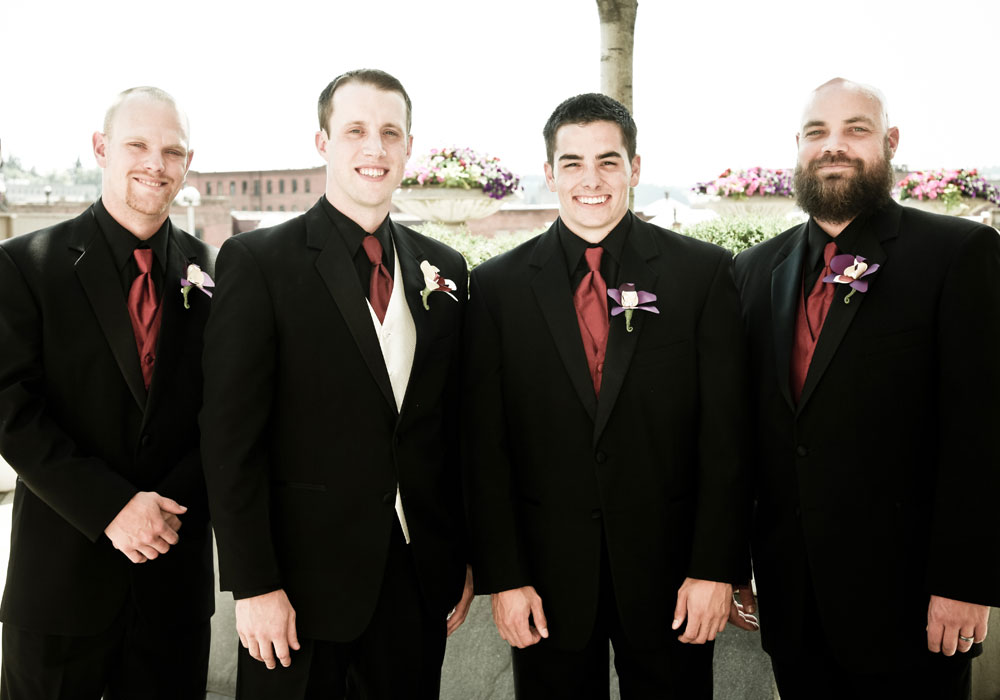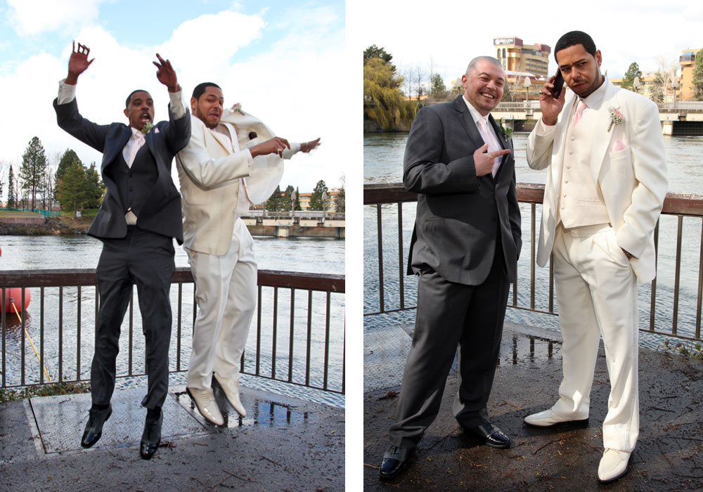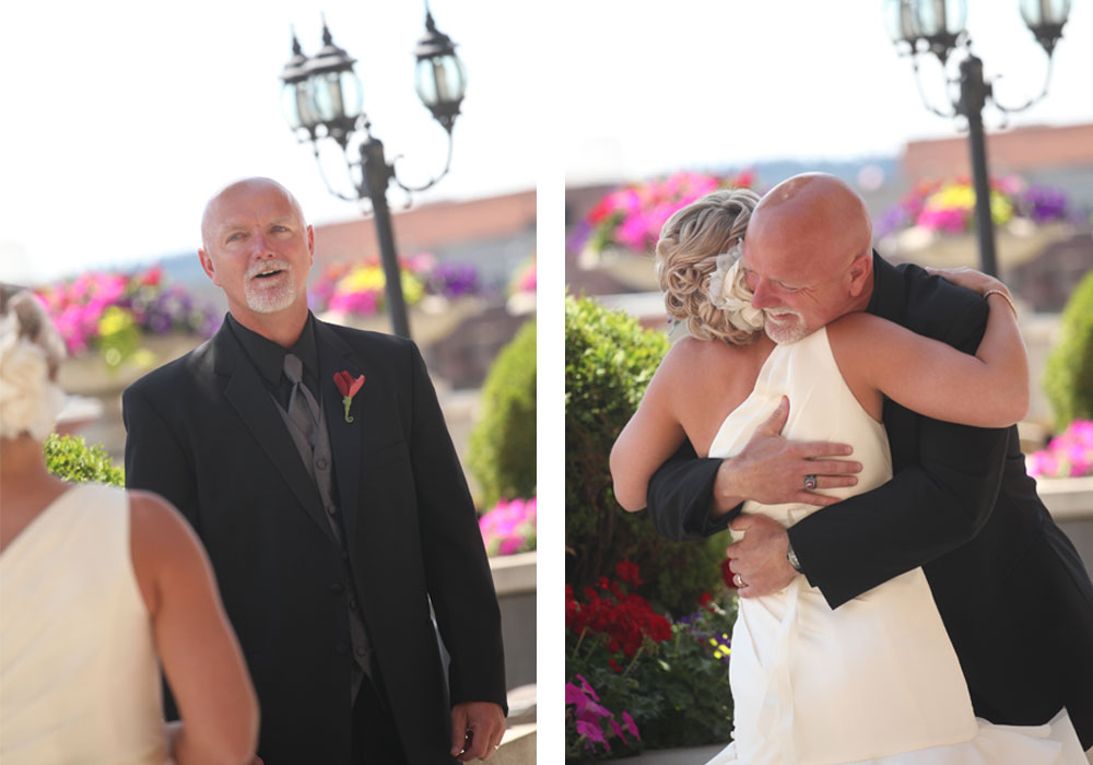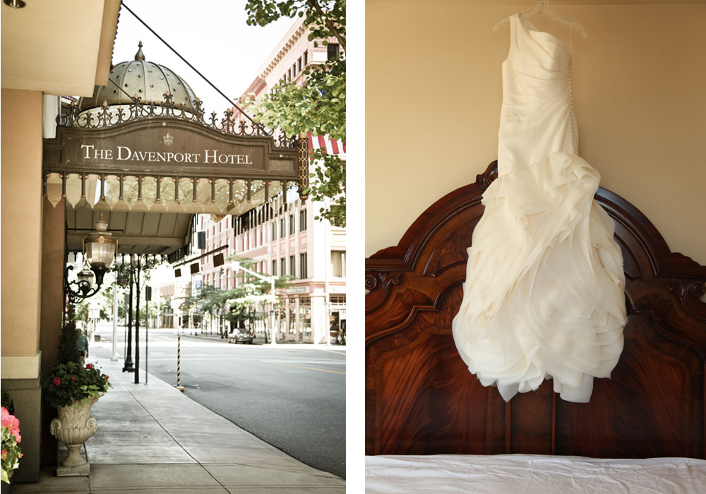 I am so impressed with the wedding venues Spokane has to offer! If I were planning a wedding I think I would have a difficult time selecting a spot! Chateau Rive at The Flour Mill is absolutely unique and beautiful! And of course The Davenport Hotel is without a doubt the best hotel in Spokane, as far as having history, character and style! And to top these amazing places off Kayla and her mom rented furniture and other pieces from The Attic to add flair and achieve the look Kayla and her family wanted for the big day! I’ve never had a bride with a dress like Kayla’s! Just when you think you’ve seen it all, a bride comes along with a dress that takes your breath away! Jeff and his guys chilled in their room watching baseball until the bride’s mom and I bugged them to get dressed. And I especially enjoyed teasing the guys because as it turned out, one of the groomsman and I have been friends for about 13 years! That was a really funny surprise when I learned he was in the wedding party! I love my job and all the little perks it has. Catching up with an old friend is definitely a good time! Thank you Kayla, Jeff and your wonderful families for letting me join in your special day! I’ll definitely never forget this one! And I’m sure you won’t either! Cheers! xoxo