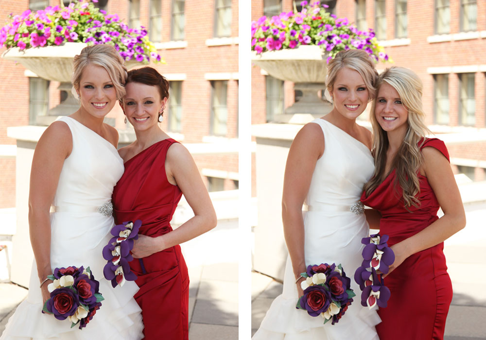 Kaitlyn and Joby grew up on the same street. All their friends and family called it early on, they all told Kaitlyn and Joby they would get married one day! Kaitlyn’s sister and maid of honor, gave a heartfelt speech and pointed out the fact that EVERYONE knew these two would get married! Having that knowledge all along that Kaitlyn and Joby would marry didn’t subdue the tears of joy that were shed. St. Joseph’s Catholic Church was the venue for the ceremony, and the party got under way at the Fireside Room at Center Place in the Spokane Valley. There are many perks to my job, but this one included the surprise that Joby’s great grandpa and my great grandpa were brothers! Joby and I are distant relatives! Woo hoo! I love shooting weddings for family, even if it’s family I had never met before! I’m so happy everything worked out the way it did! Congrats to the two little love birds from the same block. Scroll to the end to see the “Then and Now” photos!