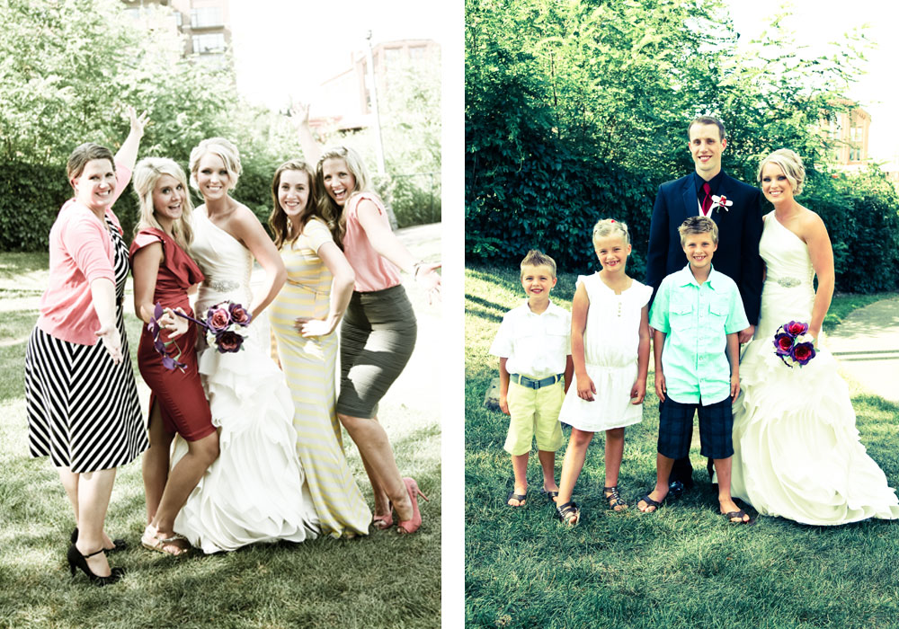 Carissa and Mike are my ideal couple to work with because all they want to do is have fun! And with Carissa’s organizational skills and awesome creative talent, their wedding day was so much fun! As far as I could tell everything ran like clock work! And if it didn’t, well then they fooled me! But hey, they were working with the awesome people at Beacon Hill and for the second weekend in a row I got to work a wedding with my favorite DJ Matt Parker of Sound Authority so how could it not run smoothly?! Carissa made everything from the centerpieces, to the bouquets and boutineers, to the bridesmaids adorable T-shirts you see in the first photo collage! Beacon Hill is a beautiful venue and I am so glad I already have a wedding booked there next summer! Cheers Carissa and Mike! I don’t even have to tell you to have fun being married, because I know you already are! xxo