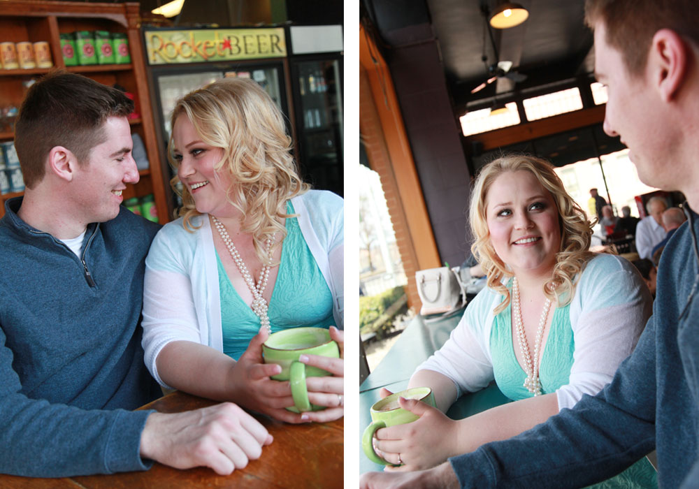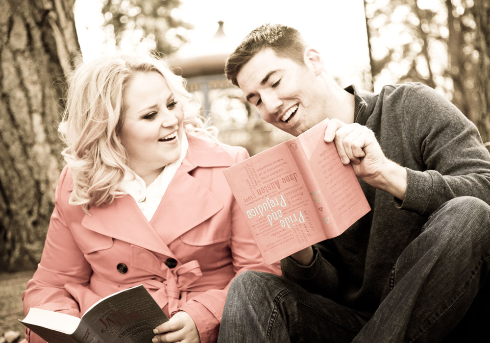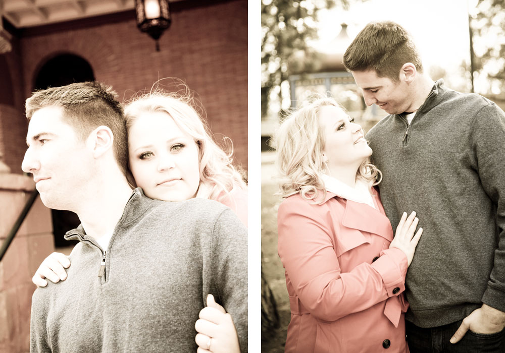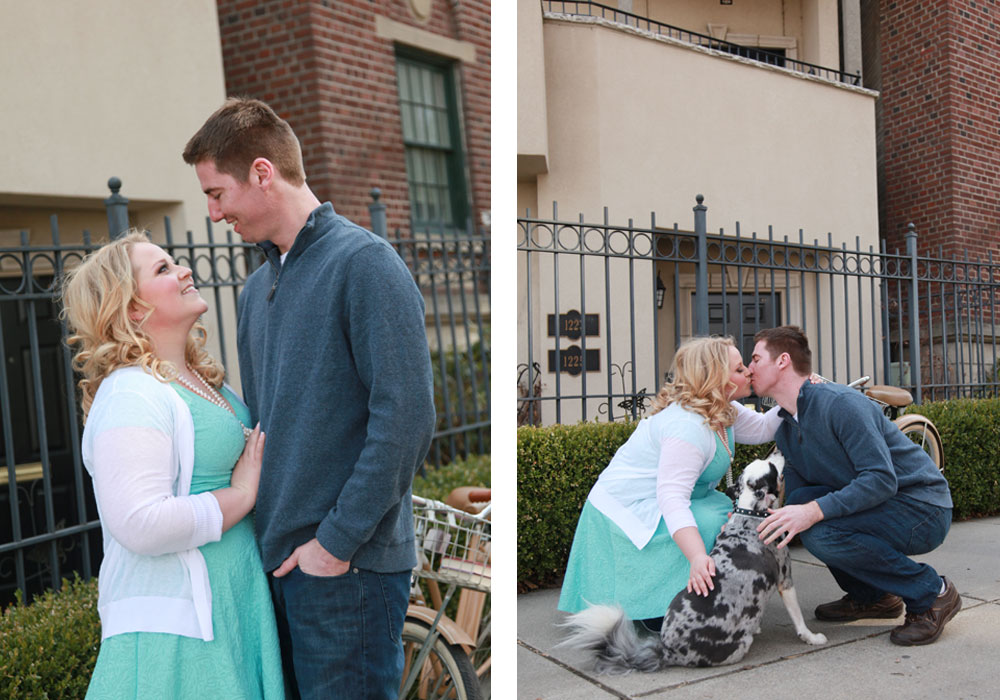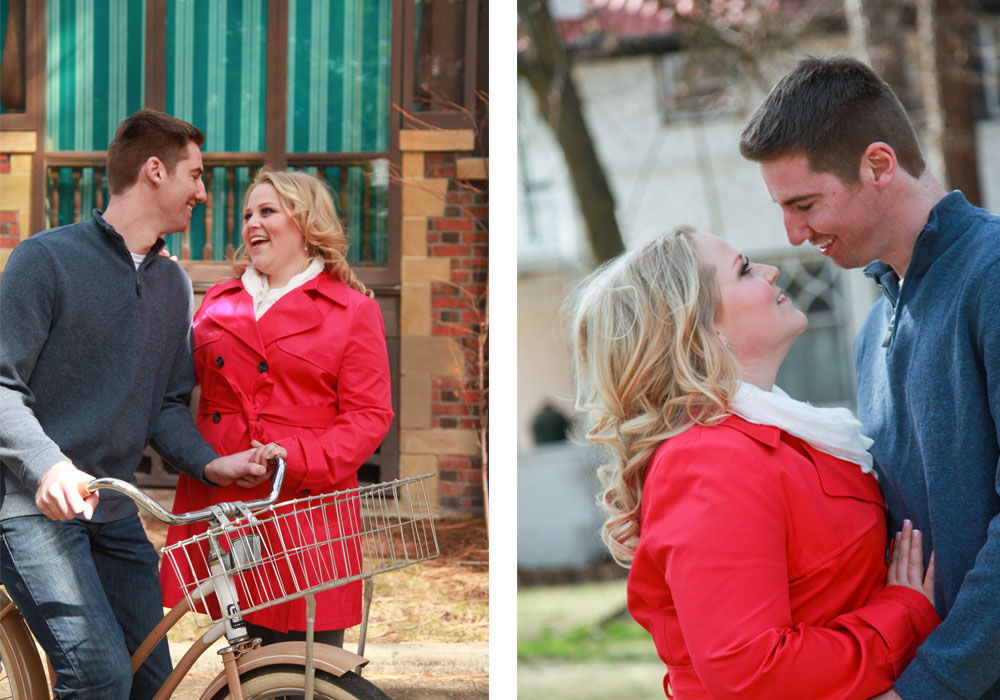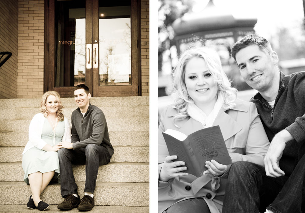 Where do I start with Jessi and Matt?! I’ve known Matt for 11 years, and I feel like I can say that I’ve never seen him happier! And I think the first time Jessi and I met was when I was shooting one of our mutual friends’ weddings. I just remember Jessi’s beautiful smile and thinking “Way to go Matt!” HaHa Even though I’ve only known Jessi for about 2 years, I feel like I can talk to her about anything, and that makes shooting their photos so easy! I know Matt and Jessi, I know their likes and dislikes, and I find myself laughing and agreeing with EVERY post Jessi puts on Facebook! We both have that school teacher/ book worm/ nerdy sense of humor. We even got the same actress when we did the questionnaire on buzzfeed.com, “What actress would play you in the movie version of your life?”! HaHa (It was Emma Watson f.y.i) Again, I don’t even know where to start when talking about their engagement session… The ring (it’s PINK, which has been my favorite color since I was little) Niko, their Australian Shepherd with one brown and one blue eye, the vintage bike… they had so many great things! Matt rides mountain bikes, and I mean pretty extreme stuff! So I thought we were going to hit up Beacon Hill or somewhere close where he rides, but instead Matt showed up with this vintage tan colored cruiser bike WITH A BASKET on the front! And I was like, “Um, Matt, what’s that? You don’t ride those kind of bikes!” And Matt told me they had just bought the bike the night before and thought it would be perfect for their engagement photos! Which of course it was! Everything just fell into place. We had finally gotten some great weather, we happened to find an old public library, and Jessi’s mom was able to tag along to be the dog wrangler! If the wedding day goes half as well as the engagement photos, it’ll be a HUGE success! Cheers to you two! I can’t believe Jessi had 156 “Likes” when she used an image from the engagement session as her profile picture! Things like that make me so happy and excited to be just a small part of their lives and one of the people they trust to help throw the best wedding ever! Thank you! xoxo, Emma